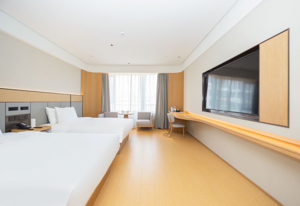高级双床房(65寸电视投屏+智能马桶+小冰箱+办公桌)