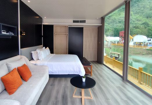 两当藕香居乡村民宿位于两当县站儿巷镇站儿巷村,是进入两当云屏三峡国家AAAA景区的会客厅所在地,处在两当生态旅游和乡村旅游发展的主干网上,民宿处在两当荷花池康养生态景区之中,紧临火车站,靠临两当八景之一“嘉陵晚渡”的琵琶洲之畔,羣山环抱,门前嘉陵江云屏河交汇穿过,碧波荡漾,山水峻秀,身临其中流连忘返。藕香居乡村民宿集住宿、餐饮、休闲、娱乐、康养度假为一体的乡村民宿。占地面积5678平方米,建筑面积780平方米,田园休闲建筑风格,一楼为餐饮、娱乐、休闲接待中心,二三楼为客房,院落与荷花池康养生态景区融为一体,满园生态萦绕,泳池水光荡漾、荷花池游船穿梭、篮球场挥汗如雨、房车营地露天电影欢声笑语,深夜伴着蛙声入眠,身心彻底放松下来!藕香居乡村民宿有六种房型,房间内光线充足、美景尽收眼底,楼层有户外观光平台,品茗看书、听蝉声一片,享田园乐趣。藕香居乡村民宿阐释了当下乡村生活的慢悠与诗情画意的田园康养生活。园区内配有果蔬采摘区、游泳池、多功能会议室、草坪营地、篮球场、小童游乐园等功能服务区,在满足游客休闲度假生活需求的同时,也满足了文化、创作、农旅康养需求。这里海拔760米,富氧、纯天然生态环境,气候湿润,空气清新,是游客休闲度假打卡的首选之地!