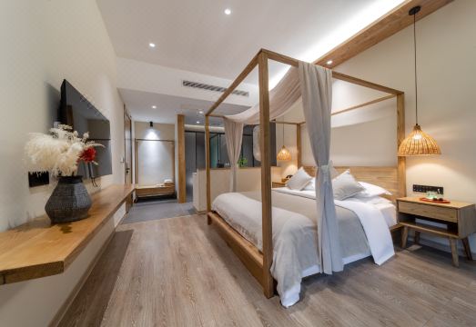 蜀南竹海云隐谷精品私汤民宿坐落于蜀南竹海景区内,隐居竹林深山,举家出游,择山水而居。世俗纷扰中把心安放在静处,放下执着和抗拒,接受自己,欣赏自己,包容自己。宁静、平和、喜乐。蜀南竹海云隐谷精品私汤民宿是川南老寨子改建而成。民宿拥有13客房,民宿拥有宽广的视野,私汤房、露台房、无边泳池均满足了不同人群和家庭的休闲需要,累了乏了,泡上一池私汤温泉,解去身心的困乏。主人尊崇“和清、静寂、文雅、舒逸”的理想,和“留住即是美”的理念设计打造。府国清茗禅一味,竹林食坊,去浊留纯净身心,参禅礼佛之后,品味一份素斋,也就成了一道必修课。这里有餐位近30个,竹海独有的全竹宴美食元素,创意的养生定食餐厅,推出“正本清源、闲适悠然”。