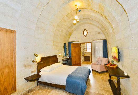 位於卡帕多奇亚中心的 Evanthia 洞穴套房酒店,坐落在一座经过精心修复的希腊古宅中,将数百年的历史建筑与现代舒适完美结合。酒店仅有 9 间独特的客房,以精品形式为客人提供宁静而私密的入住体验。房间保留了传统的石头与洞穴设计,同时融入优雅的装饰细节,带来独特的氛围。酒店距离於尔居普(ürgüp)市中心仅几步之遥,步行即可到达当地餐厅、商店,以及着名的峡谷和热气球观赏点。清晨,客人可以享用包含当地特色的丰盛早餐,随後探索卡帕多奇亚壮丽的自然风光。傍晚返回酒店时,则能在静谧而温馨的环境中放松身心。凭藉热情好客、高标准的清洁度以及个性化的服务,Evanthia 洞穴套房酒店为情侣、新婚蜜月旅行者以及文化探索者,提供一次难忘而充满魅力的住宿体验。