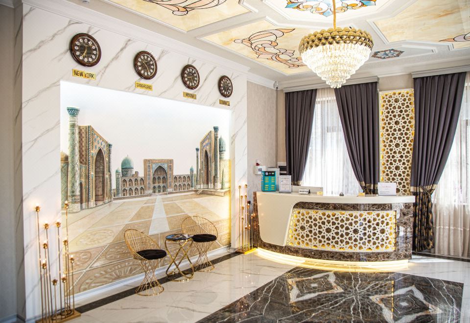 哈亚特撒马尔罕酒店坐落于萨玛尔汉,可直达火车站/地铁站,距离Khazrat-Khizr 清真寺和夏伊辛达不到 5 分钟车程。 此酒店距离Bibi-Khonym 清真寺 1.8 英里(2.9 公里),距离乌鲁格别克伊斯兰学院 1.8 英里(3 公里)。您可充分利用室内游泳池和蒸汽浴室等度假设施。此酒店的其他设施包括免费 WiFi、礼宾服务和宴会厅。您可以到餐厅享用一顿美餐;也可去酒店的咖啡馆吃些点心。每日 08:00 至 10:00 提供免费的自助早餐。特色服务/设施包括乾洗/洗衣服务、24 小时前台服务和行李寄存。酒店提供免费代客停车。有 17 间特色家居的客房提供壁炉和私人游泳池。选一间,好好款待一下自己。您的记忆海绵床垫卧床备有意大利 Frette 床单。带有数码频道的 65 英寸智能电视可满足您的娱乐需求;同时提供免费无线网络,方便您与朋友保持联系。便利设施包括书桌和独立的起居区;而且每天提供客房服务。