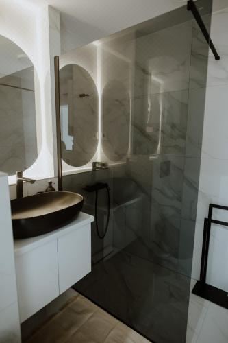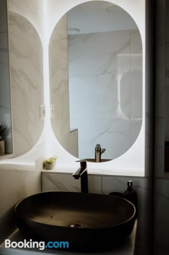这家空调公寓配有1间卧室、起居室、带冰箱和咖啡机的设施齐全的厨房以及1间带淋浴设施和免费洗浴用品的浴室。这家公寓还配备休息区、洗衣机以及1间带吹风机的浴室。