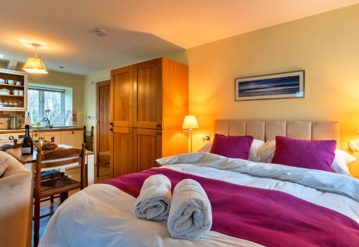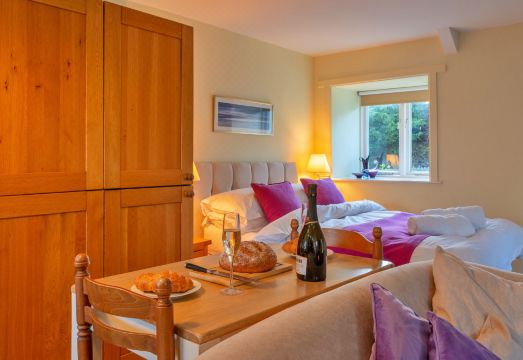 Boscastle: Apartment block. Private: garden. Supermarket 4.8 km, restaurant 5.4 km, café 6.4 km, railway station 29 km, sandy beach 10.3 km. Golf course 10.4 km. "Jenny Wren", 1-room studio 108 m2. Object suitable for 2 adults. Living room with 1 double bed and TV. Kitchen (oven, dishwasher, toaster, kettle, microwave, freezer). Shower/WC. Terrace 6 m2. Barbecue. View of the garden. Facilities: washing machine, iron. Internet (WiFi, free). Parking (1 car). Please note: non-smokers only. Smoke alarm.