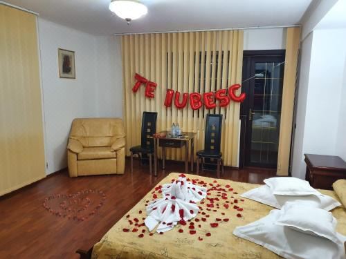 Pensiunea TV Condor距离Stirbey Castle有6分钟步行路程,提供花园、共用休息室和共用厨房,让客人尽享便利。住宿配有spa浴缸。