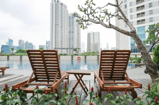 这家公寓位于雅加达塞蒂亚布迪,距离印度尼西亚豪华购物城镇只有 5 分钟车程,且距离坦林城购物中心也只有 5 分钟车程。 此公寓距离M 区广场购物中心 4.5 英里(7.2 公里),距离格罗拉蓬卡诺体育场 5.6 英里(9 公里)。享受室外游泳池等度假设施,或者到露台欣赏美景。酒店提供收费自助停车。您的公寓提供冰箱和平板电视,让您可以尽情放松享受。提供免费无线网络,方便您与朋友保持联系。卫生间配备淋浴设施。便利服务设施包括书桌和独立的起居区,此外还提供每次住宿一次的客房清洁服务。