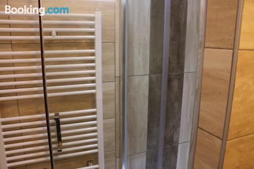 这家空调公寓配有1间独立卧室、起居室、带冰箱和炉灶的设施齐全的厨房以及1间浴室。1间浴室配有淋浴设施,也配备吹风机,提供毛巾和床上用品。