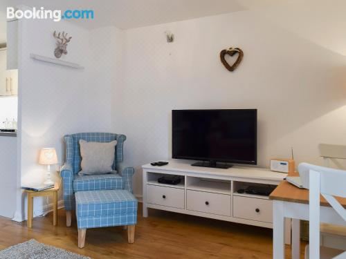 这家度假屋拥有1间卧室、电视、设施齐全的厨房、洗衣机和1间带淋浴设施的浴室。这家舒适型度假屋配备免费私人停车位,还配有免费WiFi。