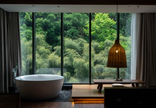 见吾乡·崃漫私汤度假酒店位於皖南川藏线中心最精华路段-泾县桃岭六道弯,其辐射区域为皖南川藏线全部沿线周边,包括桃岭六道弯、 水墨汀溪、月亮湾、落羽红杉林、青龙湾、黄子山、青龙潭、狮子山等一系列旅游度假目的地。酒店占地18亩,共有5种房型,33个房间。每个客房都是绝美的观景房,偌大的落地窗接纳了更多的阳光,微风徐来竹林随风荡漾,宾客可以选择在观景阳台悠然品茗,与山对话,与树谈心,看日出日落,观朝暮星辰。酒店还有接待中心、高端客房、无边泳池、餐厅、酒吧和KTV、多功能会议室和草坪、生态停车场、连廊水系景观等设施配套。