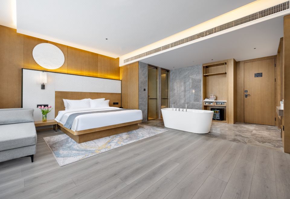 酒店位于阳泉市生态新城宁波北路、阳泉东站对面,紧邻万达广场、奥特莱斯广场,酒店客房,其中,大床房、双床房、观景房、行政大床房、商务套房、豪华行政套房,最小客房面积超25㎡,行政套房客房面积超197㎡,所有房间均配备智能系统,旨在为您提供一个温馨舒适的住宿环境。同时,酒店为住宿客人提供自助洗衣服务及健身服务,更有近百种的超值自助早餐不间断供应。大型综合体酒店,总建筑面积超1.6万平米,室外停车场可容纳近200辆车停放。交通便利,地理位置优越。