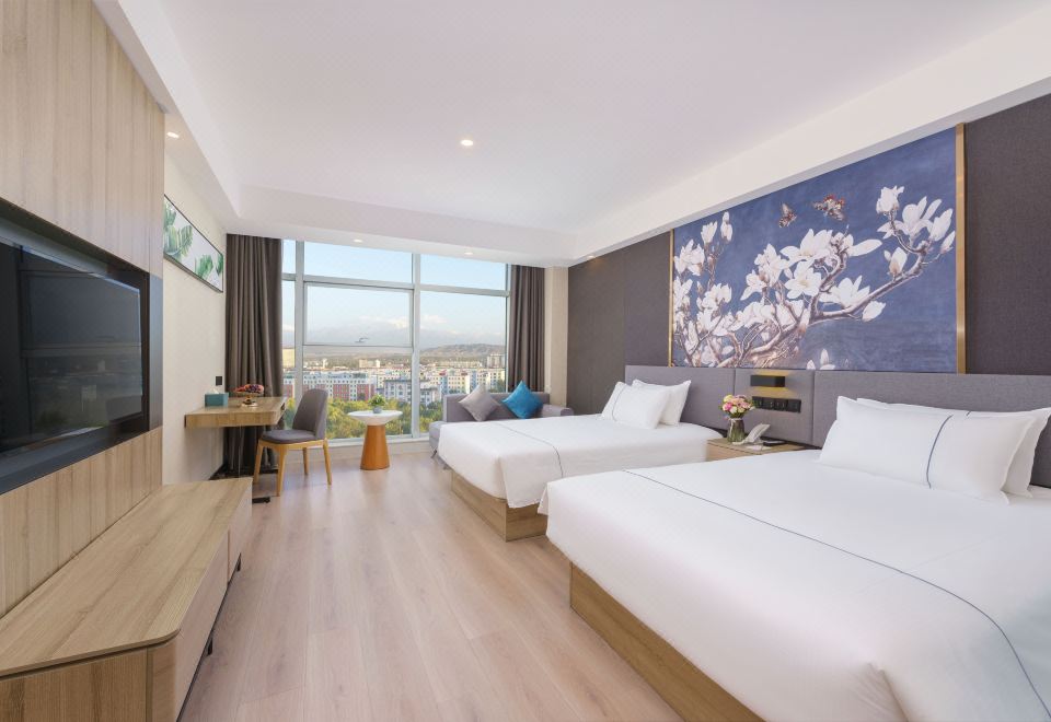 酒店房间配备一次性洗漱用品、洗手液、沐浴露、洗发水、浴帽、一次性防滑拖鞋、毛巾、浴巾、地巾、免费矿泉水、咖啡、红茶、绿茶、搅拌棒等,给您旅途提供简单便捷的体验!酒店房间均为有窗房间,部分房间为落地窗,站在窗前就可眺望天山博格达峰和阜康全景。无论您是过客、游客、访客、深度游客,酒店全体员工都欢迎您的光临。