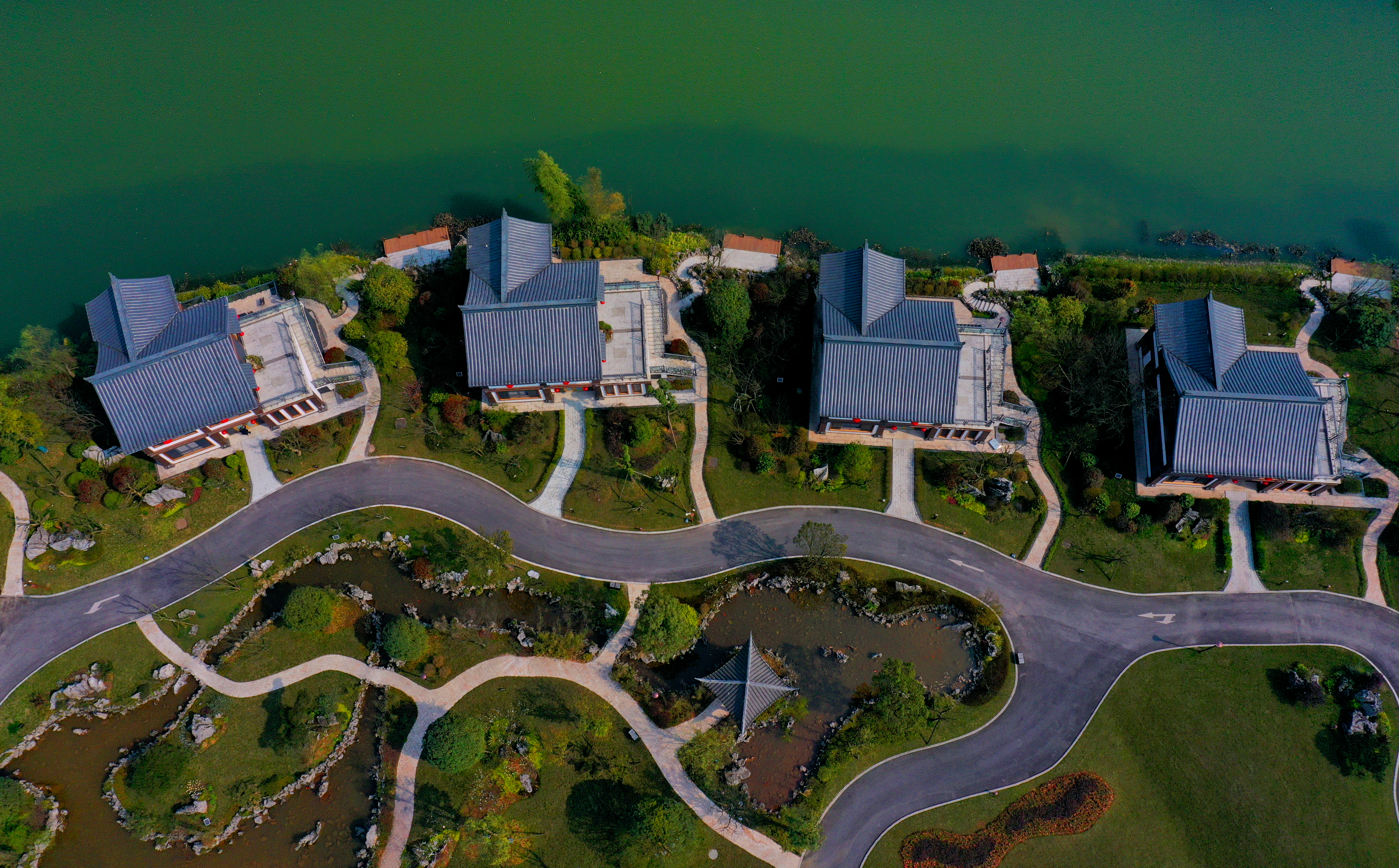 君悦山庄——以四君子之一的“竹君子”为文化主题,是蜀南竹海国宾级较高标准接待民宿。民宿坐落於蜀南竹海“竹奢组团”,本着“君子逐水而居,君子比德於竹”的设计理念,以典型的川南民居新中式风格打造高端精品民宿。建筑面积3131.61m2,客房数量37间,主要由君悦楼和四栋临湖别墅组成,园区采用“一岛六区八园”的景观设计,集山、木、竹、水为一体。酒店浮於云山之上,隐於竹海之中,距七彩飞瀑直线距离200米、万里商业街150米、亲子乐园熊猫餐厅400米,周边配套设施齐全。