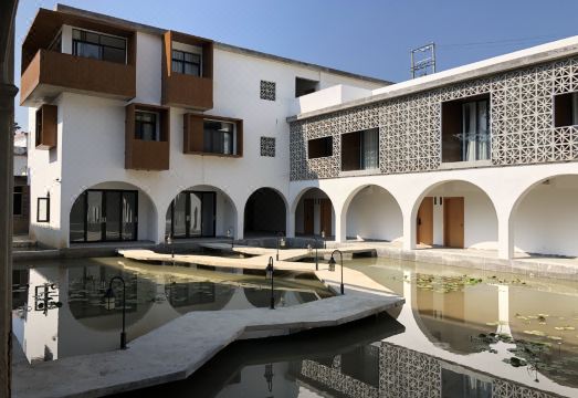 民宿位於梅州市大埔县西河镇漳北村,选址地漳北公学为当时的华侨及乡贤捐资设立,漳溪河顺流而过,依旧赋予稻田特色及农耕主题,拥有别具风情的主题客房、情景式餐厅、内部稻田观景栈道、顶楼无边际游泳池、游客服务中心等功能配套区,区位上北与福建省永定县接壤,东、南、西分别与大东镇、百侯镇、湖寮镇、茶阳镇相连,周边景区有福建永定土楼5A风景区,到厦门鼓浪屿5A风景区仅3小时车程,是中国葡萄酒业奠基人、南洋首富张裕葡萄酒创始人张弼士的故乡。