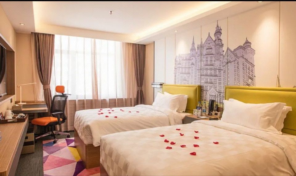 Delicate Business Double Bed Room With Desk, Mini Fridge, And Smart Projection