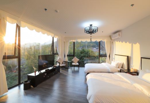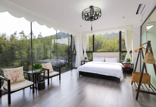 酒店距离新丰县城仅5分钟。位於云髻山休闲度假区山腰位,是游客前往云髻山风景区的必经之地。酒店是省内少有的以徽派风格为主题的特色酒店,占地5000余平方,树林覆盖率60%以上。这是一个很少被外界打扰过的世外桃源,这里有着自然山野的美丽景色,也有着田园生活的诗意与自在。这里揉入徽派元素,白墙灰瓦,清幽怡人,这份静谧,颇有些行至水穷处,坐看云起时的境界。 客房采用落地窗设计,将山野景色整个迎进屋中,风格简约、自然和温馨,有超大大堂、休闲书吧、空中花园、禅修室、棋牌空间、多功能会议室、花园露天烧烤,可满足客人的不同需求,是公司团建,自驾游,家庭及朋友聚会休闲度假的不二选择。