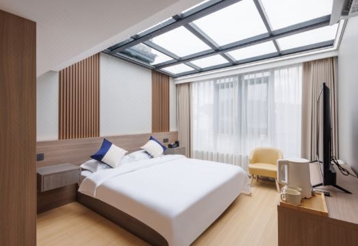 向往小院(婺源高铁站店)坐落於风景如画的江西省上饶市婺源县月华路上,位置优越,交通极为便利。作为一处融合了传统与现代设计理念的精品民宿,它不仅是旅人休憩的港湾,更是心灵得以安宁的归宿。 小院的设计巧妙融合了徽派建筑的古典韵味与现代生活的舒适便捷。白墙青瓦、马头墙和小青瓦的巧妙运用,让人彷佛穿越回那个宁静致远的年代。而内部装修则采用了现代简约风格,精致而不失温馨,为每一位入住的客人提供了一个既古典又现代的居住空间。 民宿内部设施齐全,每一间客房都经过精心设计,宽敞明亮,采光极佳。房间内配有全景玻璃窗,让客人能够随时欣赏到窗外的美景。部分房间还配备了独立露台,清晨,您可以在露台上泡上一壶好茶,享受宁静的早晨;夜晚,则可以在此仰望星空,感受大自然的宁静与美好。 除了舒适的客房,向往小院还配备了公共休闲区域,包括茶供客人在此品茶、聊天,享受悠闲的时光。此外,民宿周边环境优美,紧邻多个知名景点,如婺源篁岭、李坑景区等,方便客人游览。 向往小院(婺源高铁站店)以其独特的地理位置、精美的设计、舒适的环境和贴心的服务,成为了众多旅人心中理想的休憩之地。在这里,您可以远离城市的喧嚣,尽情享受大自然的宁静与美好,让心灵得到真正的放松与净化。