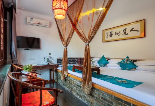 位於平遥古城内上西门街,临近古城县衙,明清一条街,客栈为冀家祖宅,有着400年的历史,占地约3亩,完好的保持了明代院落结构,是一座为数不多具有明清园林典型明代民居建筑风格的三进院落:正房为拱形土夯窑洞,东西厢房土炕,气派前檐滴水。一进院宽敞大气,二进院幽静小雅,三进院舒适别致,还有闹中取静的花园庭院,有爬架葡萄,大枣树,秋冬素净,春夏繁盛,夏可乘凉避暑,冬可沐阳煮茶。