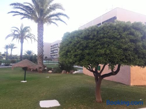 La Burbuja坐落於阿尔麽丽亚,距离雷塔玛海滩(Playa Retamar)仅有6分钟步行路程,提供海滨住宿、花园和免费WiFi。入住这家公寓的客人可以使用阳台。 这家公寓配有2间卧室、1间浴室、床上用品、毛巾、带有线频道的平板电视、用餐区、设施齐全的厨房以及海景露台。这家空调公寓还配备休息区、洗衣机以及1间带淋浴设施的浴室。 这家公寓距离托雷加西亚海滩(Torregarcia)有8分钟步行路程,距离阿莫拉德拉斯海滩(Amoladeras)有2.4公里。阿尔梅里亚机场距离住宿有5公里。