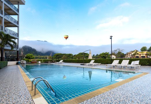 丽莎河畔观景酒店【阳台静赏热气球,泳池无限畅游】(Lisha Riverside Hotel(The Grand Riverside Hotel))地址:Ban Muangsong, 01000 万荣, 万象省, 老挝
