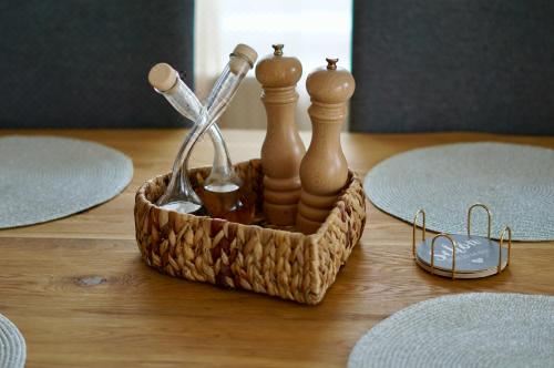 这家空调公寓配有2间卧室、起居室、带冰箱和咖啡机的设施齐全的厨房以及1间带淋浴设施和吹风机的浴室。这家公寓还提供带有线频道的平板电视以及1间带浴缸的浴室。