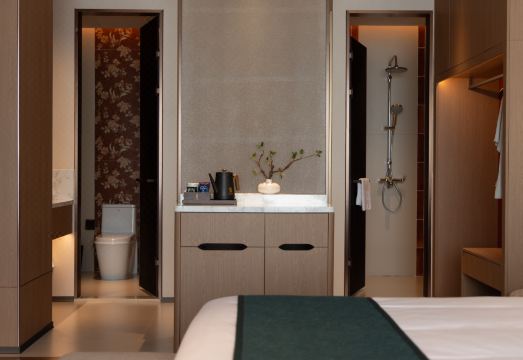酒店设计以新中式风格为主,巧妙糅合古典意韵与现代美学,平衡科技质感与自然气息,让东方美学在空间中自然流淌。客房聚焦深睡眠疗愈,精心营造“幽静之境”“平静之源”“静谧之音”的沉浸式氛围,为每一位奔波的宾客,构筑一处安放心灵的静谧港湾。