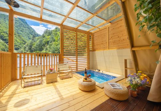 酒店坐落於毕棚沟景区腹地,四周羣山环抱、溪流潺潺,推窗即见四季变幻的绝美风光。作为景区内少有的复合型度假空间,我们以“野趣与舒适共生”为理念,打造出集私汤温泉、露营体验、多元娱乐於一体的沉浸式度假目的地。特色体验?:双泉疗愈?:独享私汤温泉的静谧浪漫,或与亲友共泡公汤温泉,在氤氲水汽中放松身心。野趣露营?:专业团队为您搭建帐篷,配备齐全露营装备,夜晚可仰望星河,清晨聆听鸟鸣。花园茶叙?:在四季绽放的花园中品茶赏景,或於茶室与好友对弈闲聊,感受慢时光。味觉盛宴?:免费中西式早餐开启活力一天,中午可品嚐地道理小路特色餐饮,味蕾也旅行。贴心服务?:宠物友好政策,让爱宠共享度假欢乐;空调地暖全天候护航,冬暖夏凉无忧;提供野餐场地与设备,打造专属户外派对;24小时健身房、棋牌室等设施,满足多元需求。在这里,您既能感受“晨起推窗见雪山,夜宿帐篷数星河”的野趣,又能享受“温泉暖身、美食暖胃”的精致。木巴尔小屋,是自然馈赠的度假诗篇,更是您珍藏毕棚沟记忆的温暖驿站。