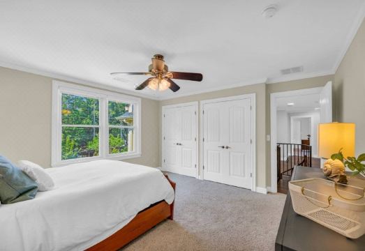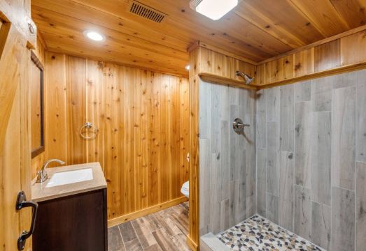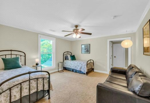 健身房 ? 游戏区 ? 烧烤区 ? 泳池 这栋房子有三层。主楼层设有一个大厨房、2 间半浴室、一个电视/客厅、餐厅、第二个电视/客厅和一个大主卧室。 - 主卧室配有一张特大号床、电视和步入式衣橱。 - 主浴室配有步入式淋浴间、爪足浴缸和坐浴盆。楼上有 5 间卧室,外加一个带摺叠沙发的奖励房。 - 灰色房间(卧室一)配有一张大床和一间带浴缸和淋浴的私人浴室。 - 粉色房间(卧室二)配有:一张大号床、一个大衣橱,并可通往带摺叠沙发的奖励房。杰克和吉尔与卧室三共用一间浴室。 - 天鹅绒房间(卧室三)配有:一张特大号床、一台电视,杰克和吉尔与卧室二共用一间浴室。 - 蓝色房间(卧室四)配有 1 张大床、1 个大衣柜以及与卧室五共用的 Jack & Jill 浴室。