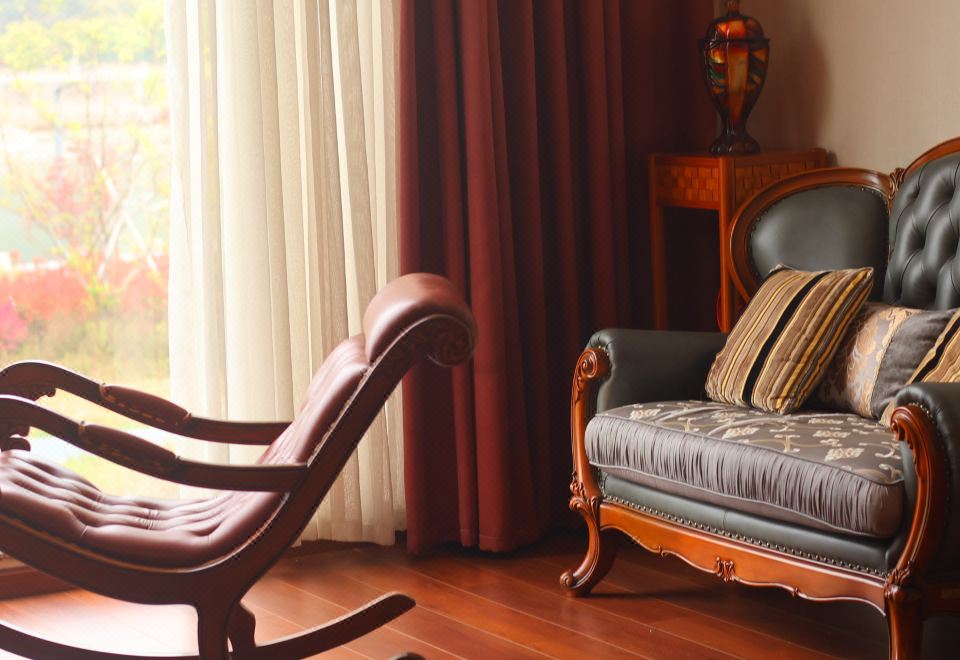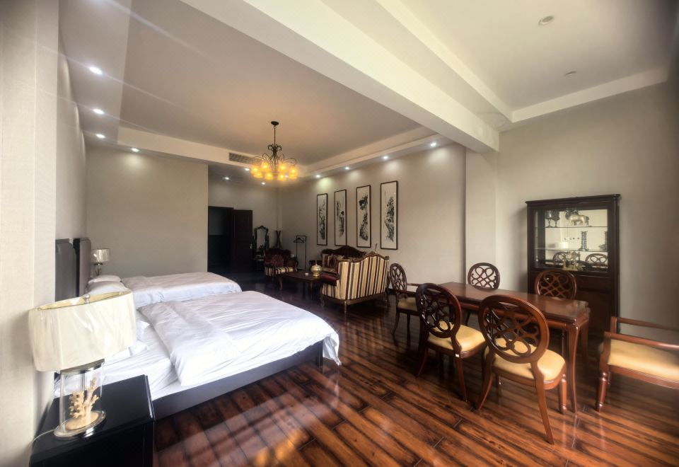 民宿坐落于《富春山居图》实景地——桐庐富春江镇扬帆路江畔,这座隐于山水间的别墅民宿,以“艺术栖居”为核心理念,当代艺术美学与江畔秘境完美融合,打造集艺术展览、文化体验、高端住宿、定制餐饮、团建社交于一体的沉浸式度假空间?。通过艺术馆的文化深度、江景房的自然治癒、定制化服务的情感联结,我们的民宿将不仅是住宿场所,更成为富春江畔的精神地标。?民宿内嵌1000多平方米的曹俊艺术馆,常设国际艺术大师曹俊的《宇宙系列》油画及“曹俊蓝”水彩作品。馆内定期举办书画雅集等活动,客人可近距离感受泼墨山水与现代抽象艺术的碰撞,体验“江畔美术馆”的独特魅力?。 定制餐饮:餐厅主打“富春江宴”,以现捕鱼虾(如船头鱼、河虾)和有机时蔬为特色,提供免费早餐、预订晚宴?。 团建社交;多功能厅配备KTV、全自动麻将机,庭院支持定制茶会、艺术沙龙?; 私密别墅区适合高端商务会议。 艺术赋能:联动曹俊艺术馆,推出“富春山居图写生”“漆扇创作”等活动,客人可参与艺术工坊,将作品带回家?(需预约)。 自然探索:绿道骑行等体验,或由管家定制严子陵钓台、马岭古道徒步路线,感受“人在画中行”的意境?。 5分钟车程内:严子陵钓台、江南龙门湾、富春江小三峡; 30分钟可达:OMG心跳乐园、大奇山国家森林公园,瑶琳仙境,严州古城等满足探险与静谧的双重需求?。 ?入住即享: 私人艺术导览、24小时管家服务。 (注:部分活动需提前预约,详情请谘询管家?)