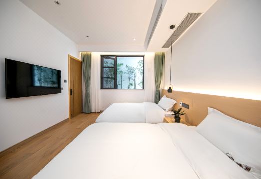 民宿建筑共四层,房间类型丰富多样,涵盖温馨的家庭套房、整洁的双标间、浪漫的大床房等。每个房间均采用落地玻璃设计,让您躺在床上就能饱览迷人美景,这里无疑是您旅游度假的理想之选。