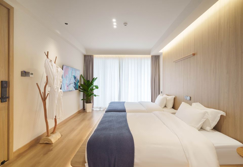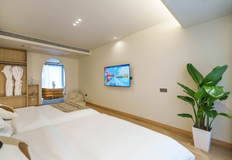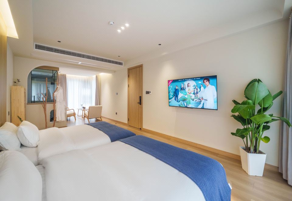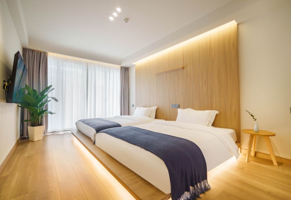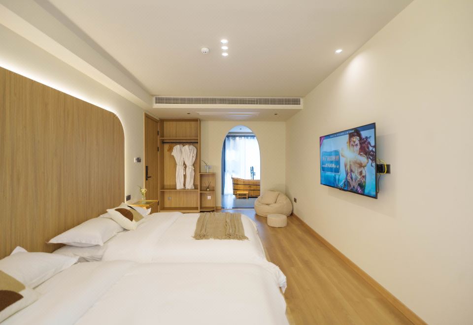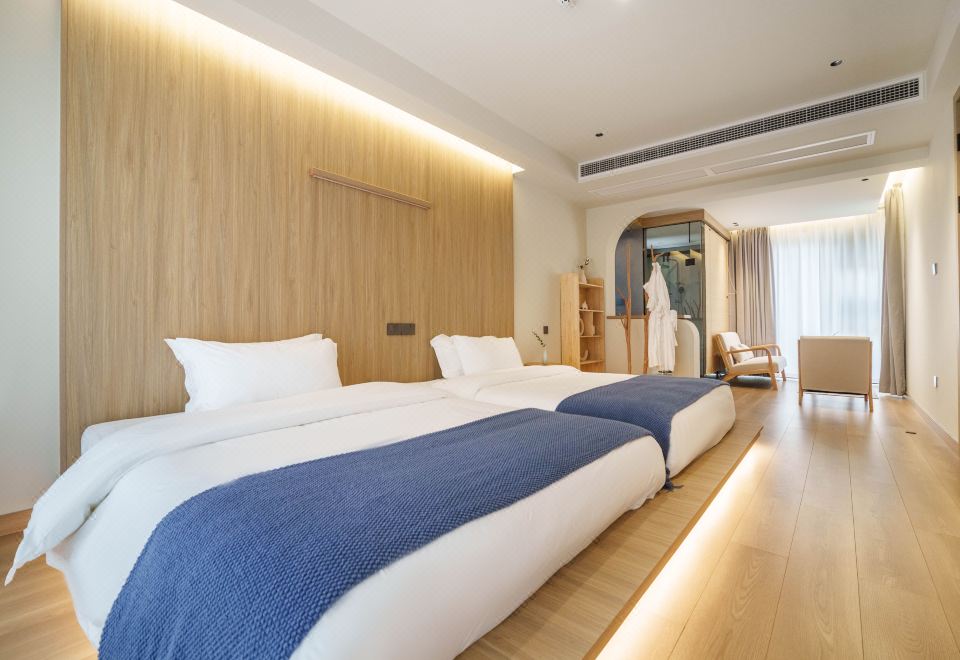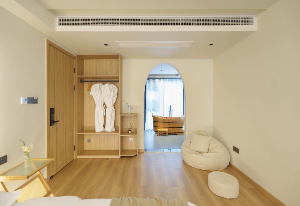望潮·侘寂原木风榻榻米双床房(雅致浴缸+ins风懒人沙发+智能马桶)