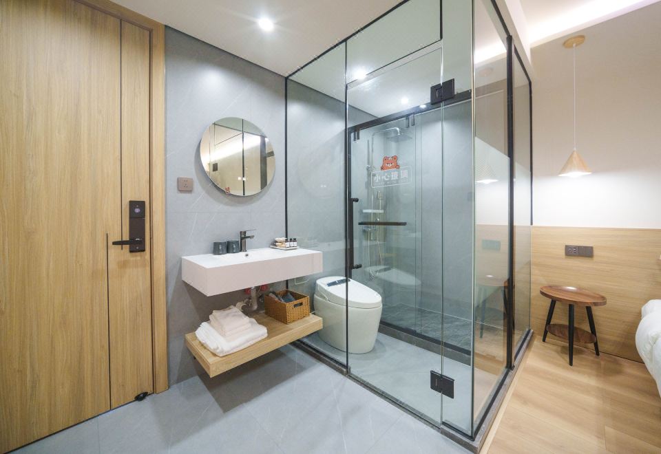 初见·侘寂原木风海景情侣大床房(轻奢舒适躺椅+智能马桶)