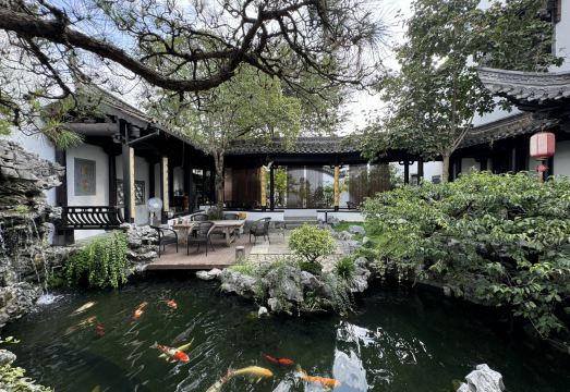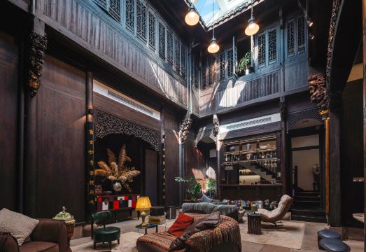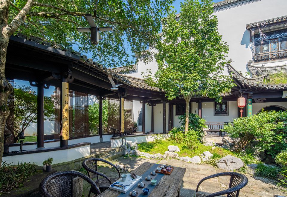 民宿的主体建筑系一幢从皖南偏远山区整体搬迁而来的保存较为完好的清末民初全银杏木榫卯结构徽派老建筑,该建筑经原样复建后,从一定程度上展现出了徽派建筑中木雕、砖雕、石雕的精美之处以及浓郁的书香之气;整幢建筑分上下两层,三进两天井,拥有徽派建筑中典型的“跑马楼”,在保持古建基本原貌及架构的前提下,改建出了符合现代居住条件的6间客房。整个民宿总占地面积为900多平方米,位于西溪南景区核心区域,除主体建筑外,还拥有占总占地面积近一半的园林,园中亭台楼阁,古树成阴,一步一景,颇具苏州、扬州园林的韵味。
