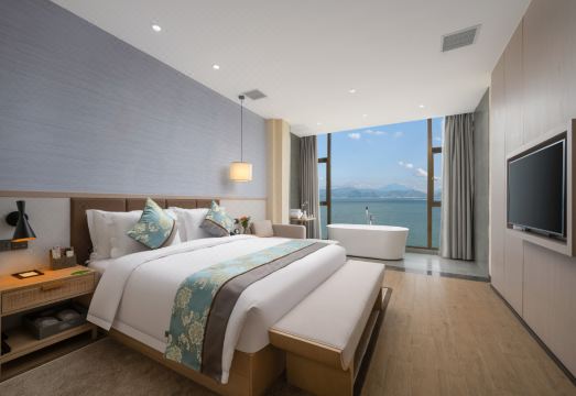 一处文人墨客的向往之地皖南原生态山水之美,古往今来,曾令多少文人墨客为之向往!2022年金秋时节,在享誉"东方日内瓦湖"之称的黄山太平湖畔,一处整体徽派建筑风格、文化气息浓郁的太平湖双墨阁大酒店横空出世。该酒店凭藉自身独有的中国书法大厦品牌文化和经营理念,将热诚为文人墨客、艺术嘉宾、八方游客服务,并愿成为朋友们来皖南游览山水,创作研讨、休闲度假的快乐之家。是中国书法大厦继巢湖云水湾双墨阁大酒店、岳西石关双墨阁大酒店后,倾力打造的又一联锁酒店作品,渗透着书法艺术等多维文化元素,是一座独具人文气质与艺术美感的高品位酒店。依据得天独厚的地理位置,定会让来到这里的宾朋沉醉在她的怀抱之中,忘却归途。中国书法大厦太平湖双墨阁大酒店,距离黄山北大门和九华山南大门车程为1小时左右,距诗仙李白笔下的桃花潭车程约50分钟,是连接皖南山水之间的纽带;太平湖景区总面积312平方公里,水域面积88万平方公里,空中鸟瞰,就象两条栩栩如生的巨龙横卧于羣峯之间,被誉为"黄山情侣"之美称。当您徜徉皖南山水之时,光临双墨阁大酒店,优美舒适的环境倾刻让您神清气爽,这里空气负氧离子浓度长时间稳定在每立方厘米20000个以上,空气质量优良率达100%,是名副其实的"天然氧吧"。躺在床上便可看到窗外的太平湖、羣山和湖面上滑过的小舟,一副意境悠远的水墨画即刻展现在眼前,那山水间的大片留白,顿时让观者的心像太平湖水一般宁静。会令您充分放松身心,享受愉悦的休闲时光和美好境界。当朝阳升起融化了身心疲惫后,漫步于湖畔沙滩,晨雾之中一如置身人间仙境;夜晚来临,无论在湖景客房、大厅酒吧或是休闲阳台,您可品味着咖啡的醇香与红酒的浪漫;看着波光粼粼的太平湖,月光轻洒在湖面上,如仙子遗落的珠宝,熠熠生辉,此时正是如梦如幻的太平月夜。来太平湖吧,放下都市生活的喧嚣与烦扰,让自身走进一份宁静与恬淡,融入蓝天,白云,阳光,湖畔。毗邻太平湖畔码头和水上运动中心,距离高速公路出入口仅10分钟车程。各类一线湖景客房,将太平湖的美尽收眼底。酒店设有西餐厅、大堂吧、豪华中餐包厢,不仅以徽州风味见长,也汇聚中西特色美食,为您打造愉悦的用餐体验。酒店还配有3个不同规模的会议室及可容钠150人的宴会厅、配备了现代化音频、视频设备以及专业的服务团队。户外尚有泳池、小童乐园、茂林修竹和游船码头等。当您预订房间后,热情的服务便已开始。酒店将为您提供餐食安排、出行计划、租车服务及其他特殊需求,总枱工作人员提供24小时在线服务,游客不必担忧怎么吃,怎么玩而犯愁,酒店都已经为您安排妥当,服务细致指数定将满足您的渴望和需求。