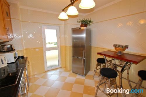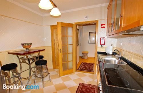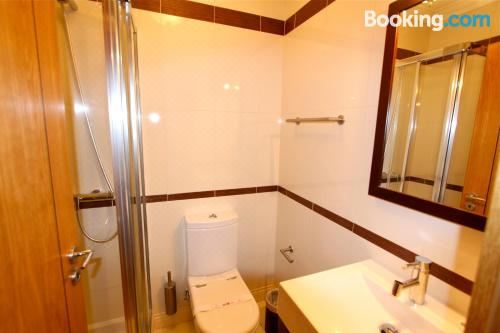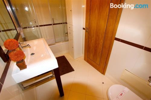 这家空调公寓配有2间卧室、起居室、带冰箱和咖啡机的设施齐全的厨房以及2间带坐浴盆和淋浴设施的浴室。2间浴室配有浴缸,也拥有免费洗浴用品,提供毛巾和床上用品。
