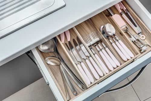 这家空调公寓配有1间卧室、起居室、带冰箱和咖啡机的设施齐全的厨房以及1间带淋浴设施和吹风机的浴室。这家公寓还提供平板电视、洗衣机以及1间带浴缸的浴室。
