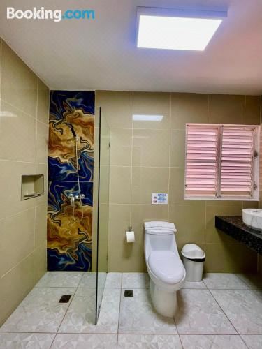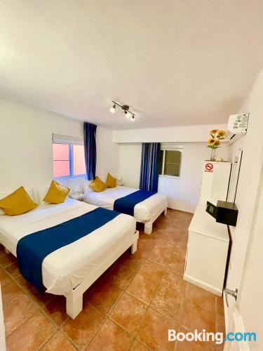空调客房配有安全保险箱以及一间带淋浴和热水的私人浴室。酒店还设有一座屋顶游泳池和一个酒吧区。