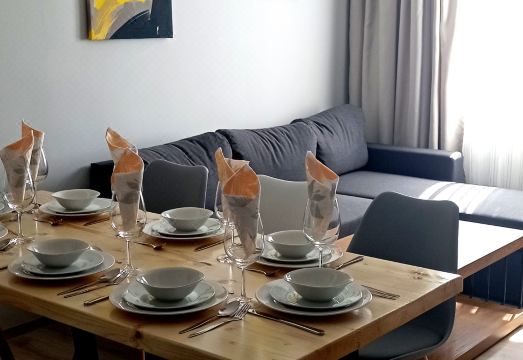The apartment consists of a living room with kitchenette and dining area, three bedrooms, bathroom and two balconies. Guests can enjoy a fully equipped kitchen with built-in oven and hob and dishwasher. Refrigerator, kettle, toaster, coffee maker and utensils. Each room has a flat-screen cable Tv, free internet and air conditioning. Bed linen and towels are provided for the entire stay, as well as an ironing board and iron. The bathroom is fully equipped with shower, washing machine, hairdryer and toiletries.