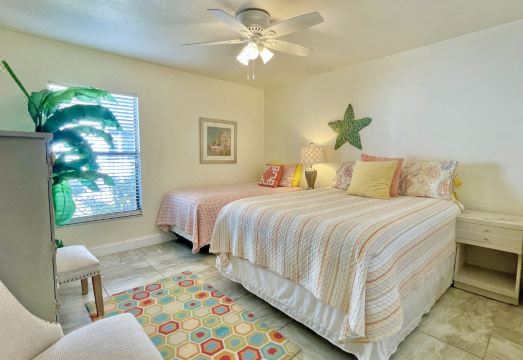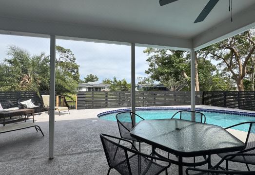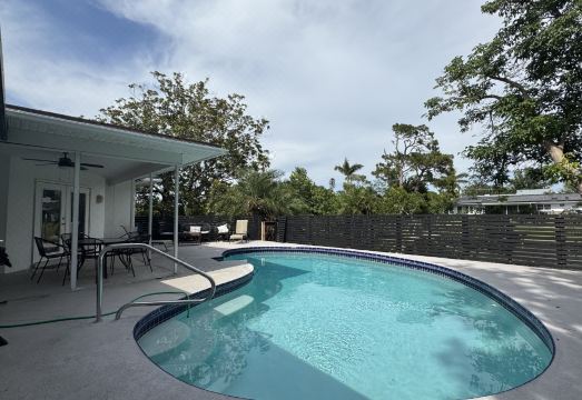 This beautiful home has recently been renovated inside and out. Located just a 10 minute drive to Holmes Beach on Anna Maria Island and 15 minutes to Downtown Bradenton puts this home right in the middle of unlimited shops, restaurants, and activities. As you enter the home you are welcomed by an open floor plan with family room, kitchen, and living room which all open out to a large screened patio and pool through french doors. All three bedrooms are very large furnished with 1 king bed in the master, 1 queen and 2 twin-size beds in the guest bedrooms. These two guest bedrooms share a beautifully remodeled bathroom with soaking tub. The master en-suite bath has a large walk-in shower and closet. The spacious kitchen with breakfast bar opens out to the patio via french doors and is equipped for all your cooking needs. Enjoy a serene and quiet atmosphere out by the pool overlooking the lake or try some fishing off the dock.