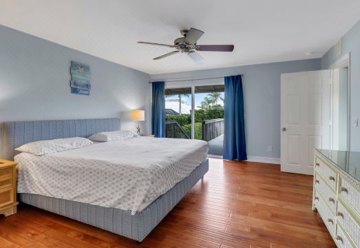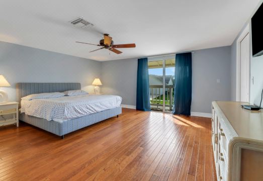 Retreat to the spacious bedrooms with beautiful hardwood floors to rest and recharge for another fun-packed day. The two king bedrooms boast the most comfortable mattresses with cozy bedding that will have you hitting snooze more than once. Bedside tables with lamps are great for keeping your phone close by or fitting in some late-night reading before hitting the hay. You can even catch up on the news or your favorite reality show on the flat screen TV. And greet the day from private balconies that look out over the quiet and peaceful neighborhood breathing in the sea air.