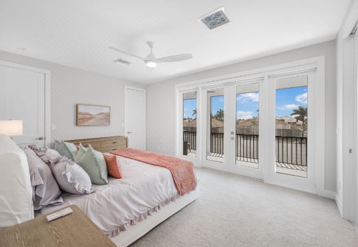 Upstairs, the second master suite is a private oasis, complete with a king bed, an en suite bathroom featuring his-and-her sinks, a spa-like bathtub, and a glass-enclosed shower. This suite also opens onto a balcony overlooking the canal, offering breathtaking views of Island. The second upstairsudes a king bed and overlooks the swaying palm trees, while the third bedroom features two twin beds with a similar tropical view. Another full bathroom on this floor provides easy access for guests.