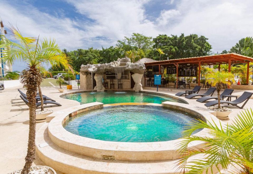 Suites at Grand Laguna Beach by Calisto Stays Caribe Stays Caribe Stays Caribe Stays Caribe Stays公寓式酒店坐落在海滨,距离卡巴雷特(Cabarete)和索苏亚(Sosua)仅有5分钟车程,提供半私人海滩区、带瀑布和石窟酒吧的海水游泳池以及覆盖公寓和公共区的免费WiFi。