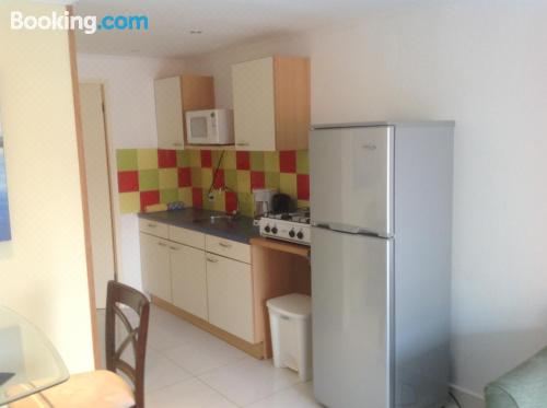 这家公寓享有池景,为客人提供露台、休息区、有线频道平板电视、带冰箱和微波炉的设施齐全的厨房以及带淋浴设施的私人浴室。住宿还提供炉灶、吐司机、咖啡机和电热水壶。
