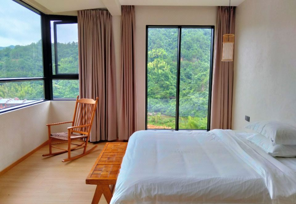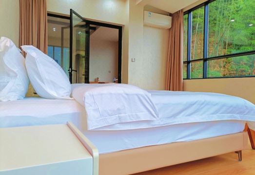 毗邻莽山国家森林公园核心景区,步行可达莽山五指峯的云海奇观,驱车 10 分钟即至莽山大峡谷漂流的激越河道。民宿隐于竹林与溪流环抱的谷地,以「独门独院」的格局,将万亩林海、山水画卷框入生活日常 —— 晨起推窗,五指峯的轮廓在晨雾中若隐若现;入夜闭户,峡谷的风声与星空在庭院里静静流淌。每一间客房都是「空间美学」的具象化实验,原生木材、夯土墙、亚麻织物构成空间肌理,保留自然造物的拙朴质感,与窗外竹林、远山形成「室内即景」的视觉延伸;春赏竹林新笋破土,夏闻溪流蛙鸣入夜,秋观五指峯红叶浸染,冬揽莽山雾凇琼枝,雨天更可独享「云绕青山山绕水」的朦胧诗意;地暖系统、智能卫浴、天然植物洗护用品,在侘寂美学的质朴表象下,暗藏现代生活的舒适肌理;这里不是传统意义上的民宿,而是一座「自然美术馆」—— 用空间美学解构山水,以侘寂哲学沉淀时光。无论是想在五指峯的云海中寻找诗意,还是在大峡谷的激流中释放自我,亦或躺在竹影斑驳的房间里,看一场不被打扰的日出与星空,这里都将成为你与莽山山水对话的住脚。