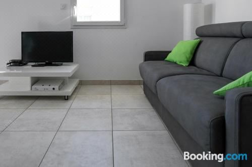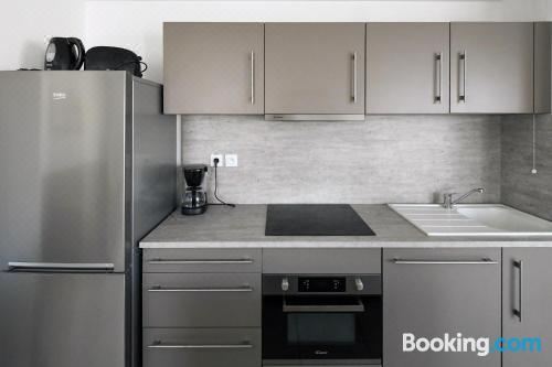 这家空调公寓配有2间卧室、起居室、带冰箱和咖啡机的设施齐全的厨房以及1间带淋浴设施和免费洗浴用品的浴室。这家公寓还配备休息区、洗衣机以及1间带吹风机的浴室。