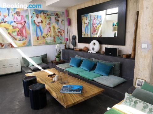 这家空调别墅配有3间卧室、起居室、带冰箱和咖啡机的设施齐全的厨房以及2间带淋浴设施和吹风机的浴室。这家别墅还配备带卫星频道的平板电视以及2间带浴缸的浴室。