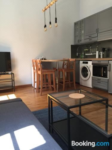这家空调公寓配有1间独立卧室、起居室、带冰箱和烤箱的设施齐全的厨房以及1间浴室。这家公寓还配备休息区、洗衣机以及1间带吹风机的浴室。