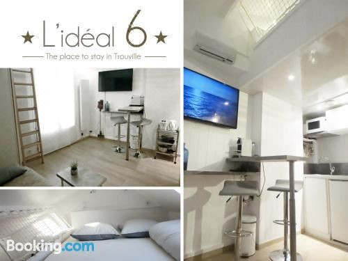 L'IDEAL 6 ( casino a 50m, plage a 150m)位于滨海图维列,距离特鲁维尔海滩(Trouville Beach)仅有2分钟步行路程,配备海滨住宿和免费WiFi。这家公寓距离多维尔娱乐城有2.7公里,距离平原长廊有2.8公里。