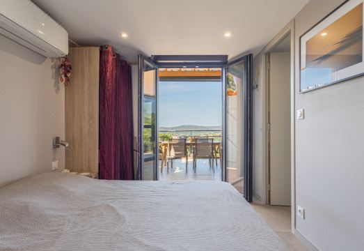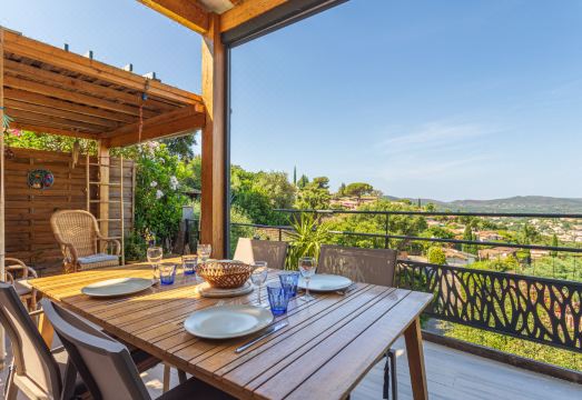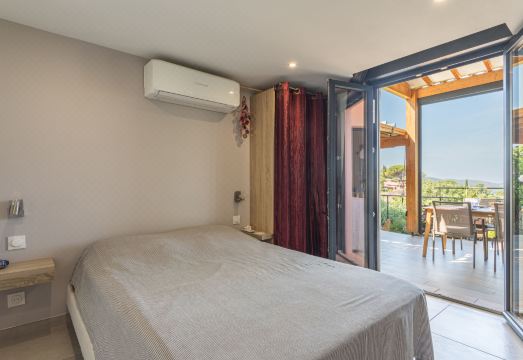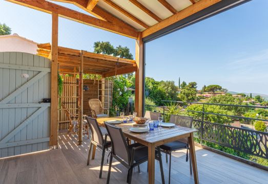 Beautiful farm estate "Le Domaine des Maurels". In a quiet position on top of a hill, in the residential district, 1.4 km from the sea, 1.4 km from the beach. In the complex: reception, restaurant. Grocery 800 m, bus stop "Lavandou Gare Routière" 1 km, sandy beach "du Lavandou" 1.4 km. Nearby attractions: Saint Tropez 40 km, Magic World 25 km, Parc Olbius Riquier 21 km, Le Jardin des Méditerranées 15 km. Residence with electric gates. The keys‘ handover takes place by the agency Interhome in Le Lavandou, 1 km. 3-room house 56 m2 on 2 levels, south facing position. Beautiful furnishings: living/dining room with dining table and TV (flat screen). 1 room with 1 french bed (140 cm, length 190 cm), shower/WC and air conditioning. Exit to the terrace. 1 room with 1 french bed (140 cm, length 190 cm), air conditioning. Kitchenette (oven, dishwasher, 3 induction hot plates, microwave, freezer, electric coffee machine, Capsules for coffee machine (Senseo) extra). Shower, sep. WC. Upper floor: 1 room with sloping ceilings with 1 french bed (140 cm, length 190 cm), air conditioning. Terrace 20 m2, south facing position. Terrace furniture. Very beautiful view of the countryside. Facilities: washing machine, dryer, iron, hair dryer. Internet (WiFi, free). Parking (1 car). Please note: non-smoking house. Maximum 1 pet/ dog allowed. Smoke alarm. Offer by a private individual according to? Art. 155, IV of CGI. 83019000749PQ
