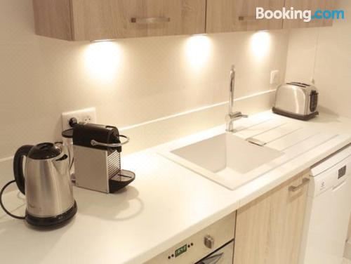 这家公寓配有2间卧室、起居室、带冰箱和咖啡机的设施齐全的厨房以及1间带浴缸和吹风机的浴室。这家公寓也提供1间浴室。
