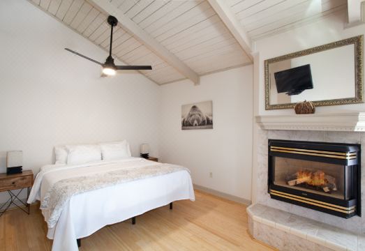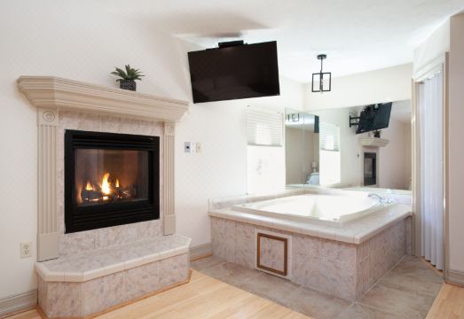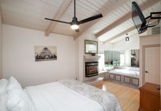 ★ Master Bedroom on the Main Level with a King Bed, Jacuzzi Tub, 32” TV w/ Cable, Electric Fireplace, & Ensuite Bathroom