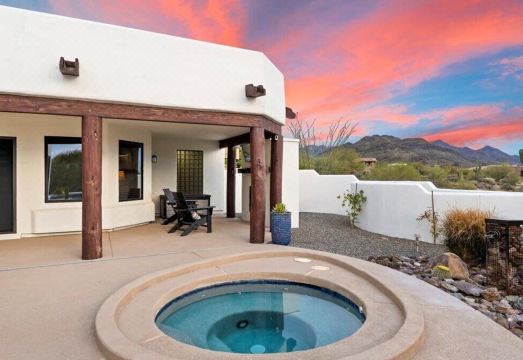 Book your next AZ vacation at this luxury North Scottsdale home situated in a serene desert setting. Breathtaking views in every direction await. Home has a southwestern flair so you feel right at home in the Sonoran Desert. Fully stocked kitchen, spacious bedrooms, multiple gathering areas for family or friends. You wont' want to leave the comforts of the backyard. Sparkling heated pool, hot tub, fire pit, and outdoor tv all make this a perfect place to unwind and relax.